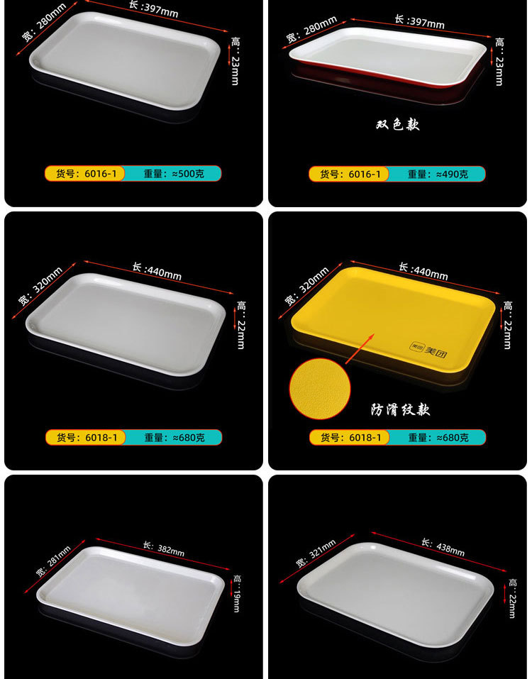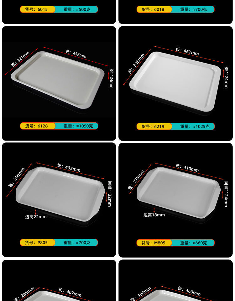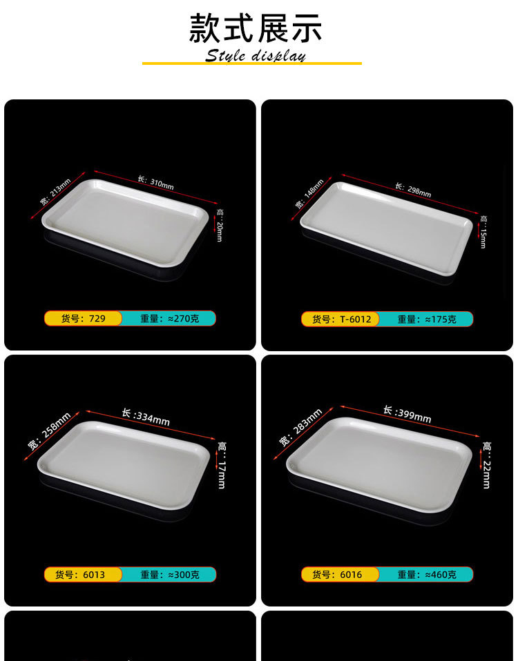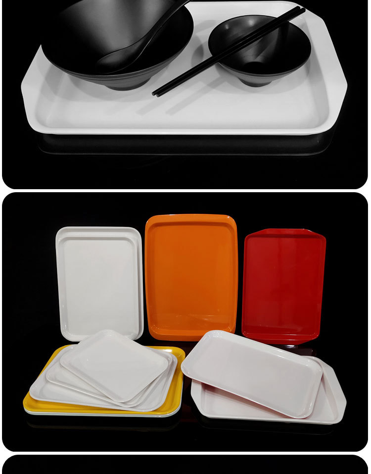 Melamine Tableware Canteen Fast Food Breakfast Hotel Plastic Rectangular White Household Tray Light Luxury Items Fruit Black
